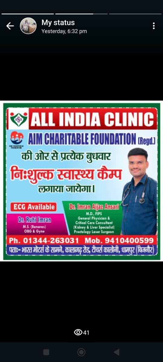 Dr. Imran Aijaz, M.D., FIPS, is a dedicated medical professional and social leader committed to holistic community development in India. As a General Physician and the Chairman of AIM Charitable Foundation, he has devoted his life to serving humanity through healthcare, education, empowerment, and social welfare initiatives.